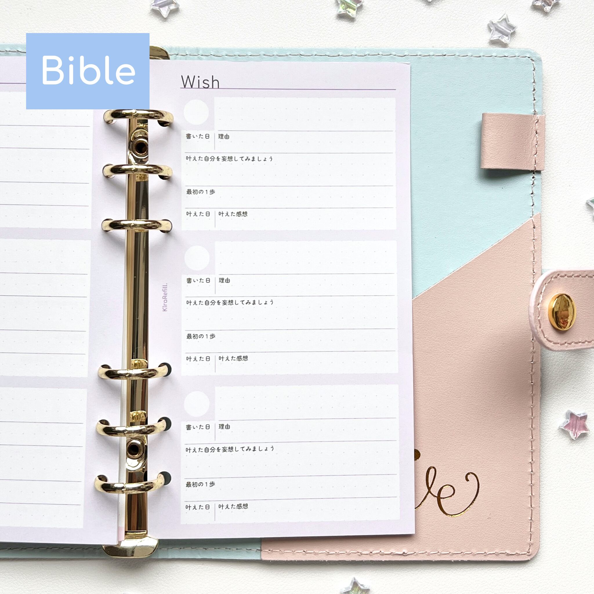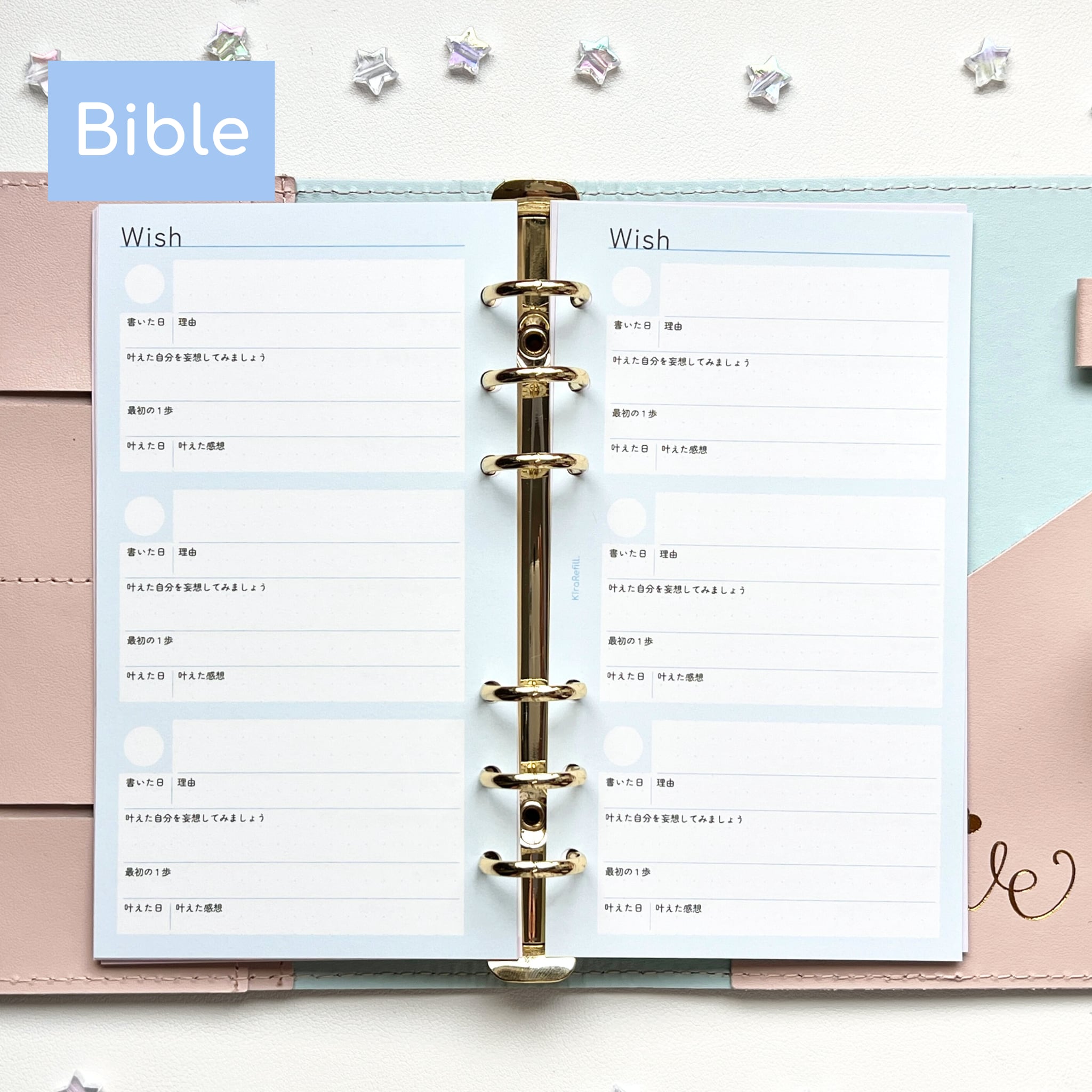 バイブルサイズのシステム手帳に使える、独自フォーマットのWishリストリフィルです。