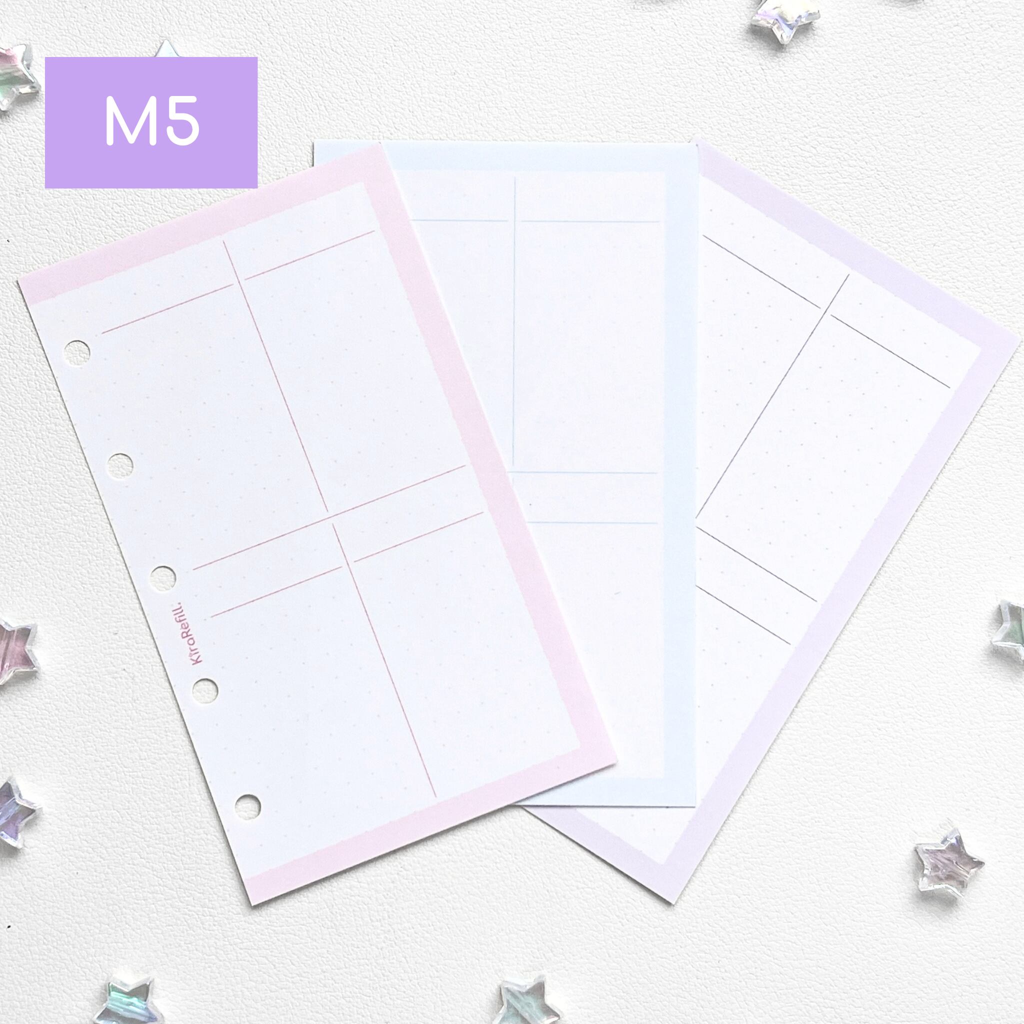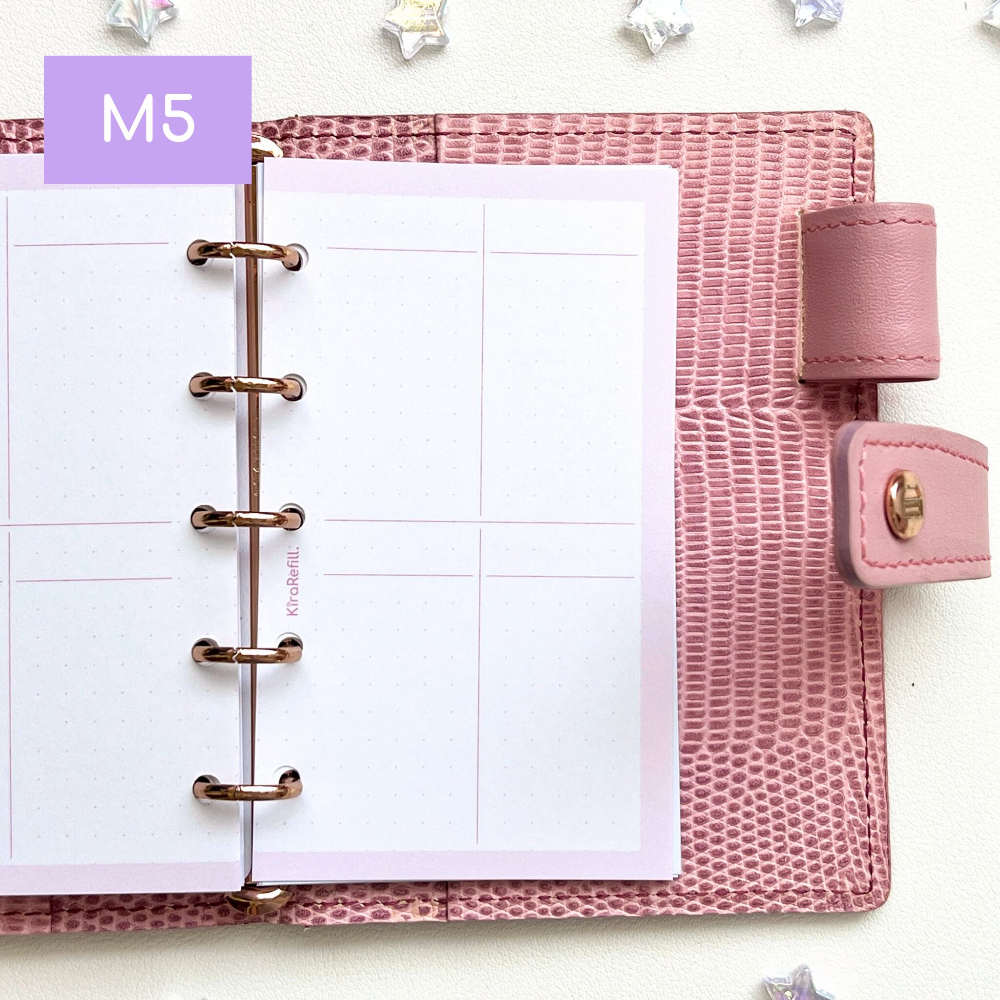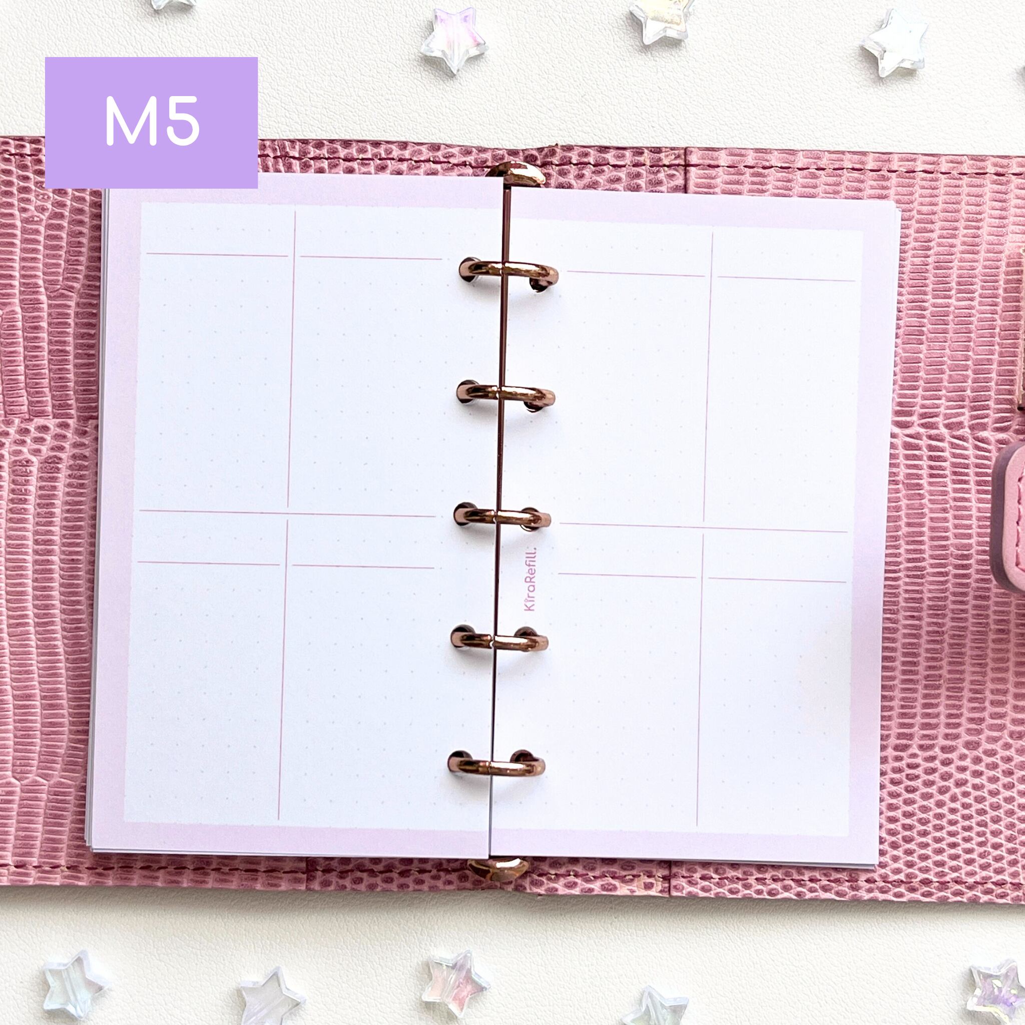 マイクロ5サイズのシステム手帳に使える、8つのマスで構成された週間リフィルです。