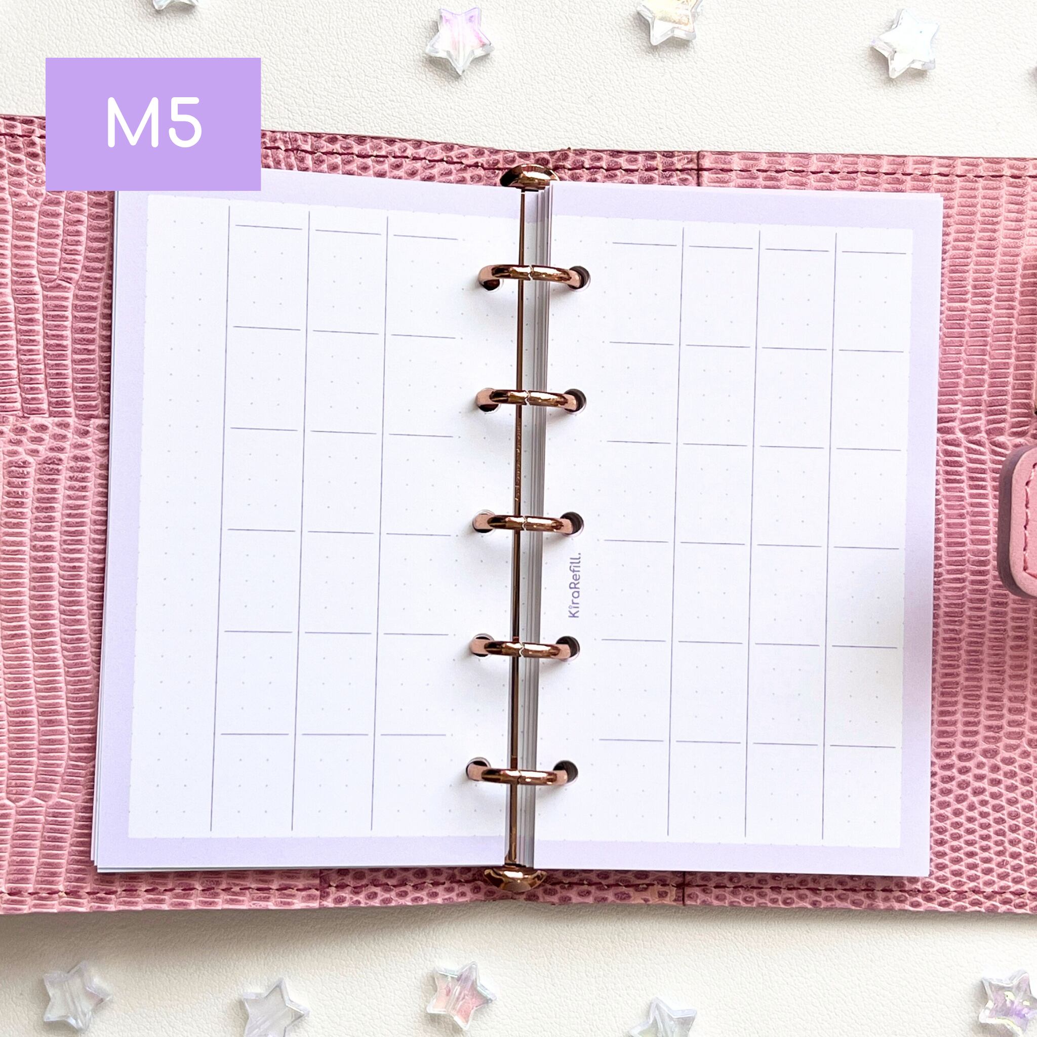 マイクロ5サイズのシステム手帳に使える、曜日や日付を自分で記入するタイプの月間リフィルです。